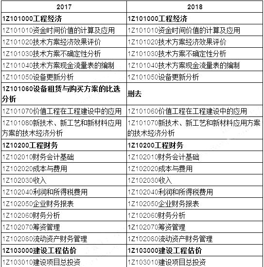 2018年一級建造師工程經(jīng)濟(jì)教材變動情況(目錄):