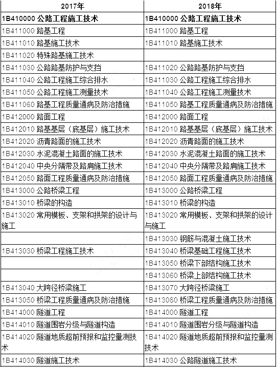 2018年一級建造師公路工程教材目錄與2018年目錄相比較,2018年一級建造師公路教材目錄變動情況如下:注冊會員即可免費獲取一建免費資料 點此注冊>>