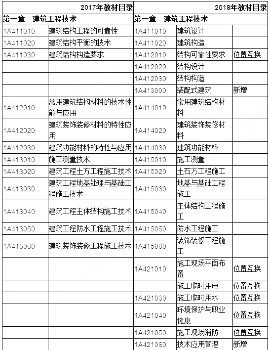 2018年一級建造師建筑路工程教材目錄與2018年目錄相比較,2018年一級建造師建筑教材目錄變動情況如下:注冊會員即可免費獲取一建免費資料 點此注冊>>