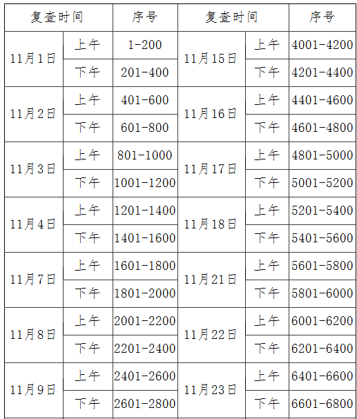 11月1日-11月28日(法定工作日工作時間),具體安排如下表