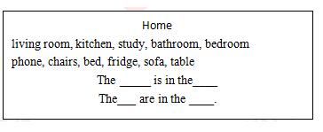 1.Show the pictures of living room, kitchen, study, bathroom, bedroom and the things in living room, kitchen, study... such as phone, chairs, bed, table and so on. Students say the English name.