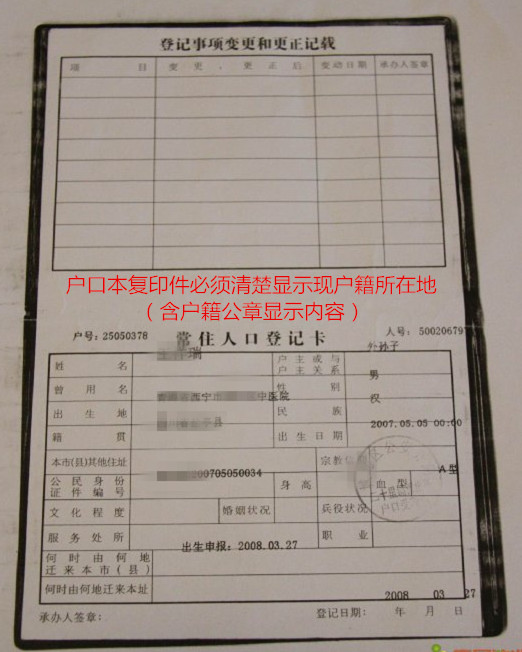 (八)戶籍證明:查驗原件,提交復印件一份(正反面復印到一張A4紙上)