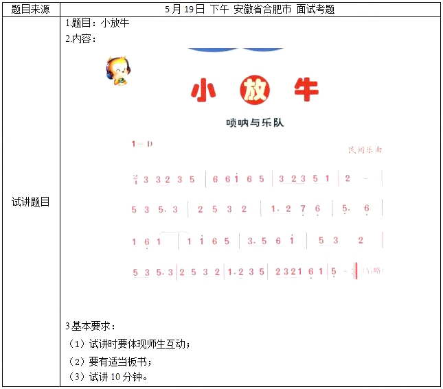 小結:本節課我們欣賞了《小放牛》,感受了嗩吶的特殊音色,希望大家在日常的生活中,多關注一下我們民族音樂,感受民族音樂的美。題目來源于考生回憶