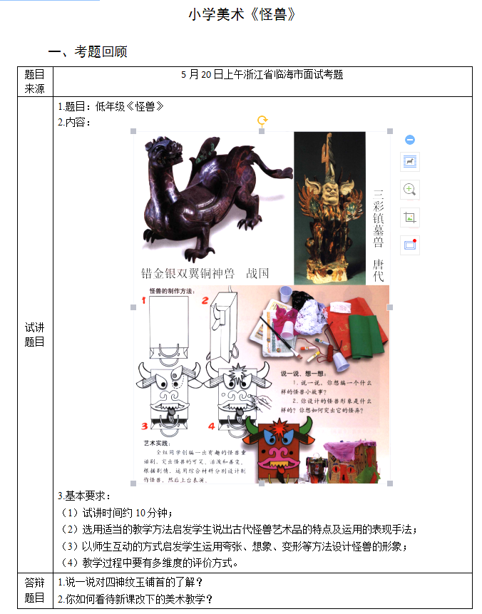 1.教師展示各時期帶有“怪獸”的作品,請學生觀察,提出問題:“作品中的怪獸都出現在哪些物品上,他們在當時的作用是什么?”