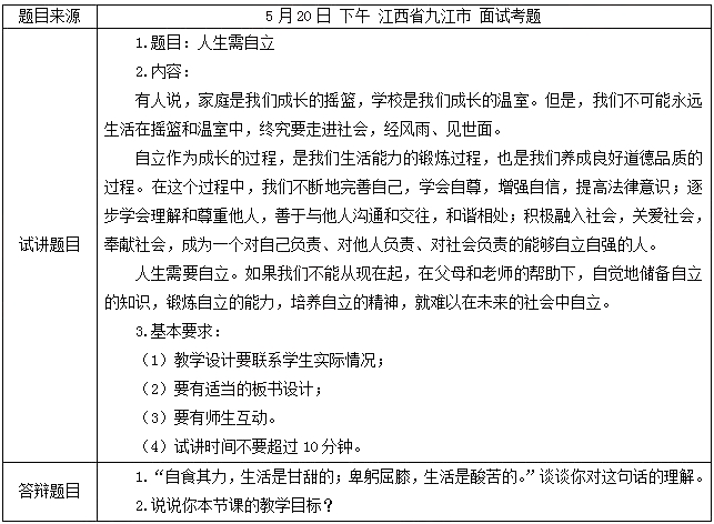 學生討論后導入今天的新課《人生需自立》。題目來源于考生回憶