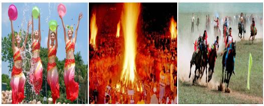 我將通過展示幾幅體現少數民族特色的圖片,讓學生回答圖片表現的是哪個民族。