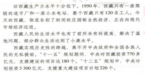 同學們對比一下教材中解放前的西藏生產力狀況和實施西部大開發后西部生產力的發展狀況。有怎樣的體會?