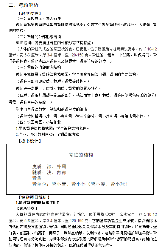 本節課重點講授腎臟的形態結構,為了突出教學重點,我在授課過程中著重突出腎臟的直觀形態,通過多媒體圖片、模型等方式,增強學生理解的直觀性。學習過程中,由學生進行自主觀察,回答教師提出的問題。課堂教學結束前,通過填圖識圖的方式,加深學生理解。通過上述方式突出本課教學重點。