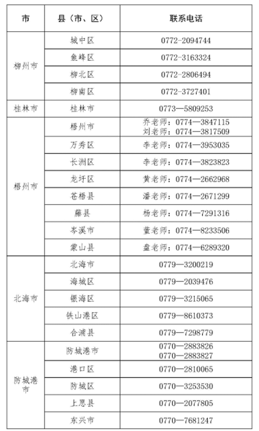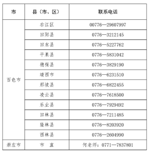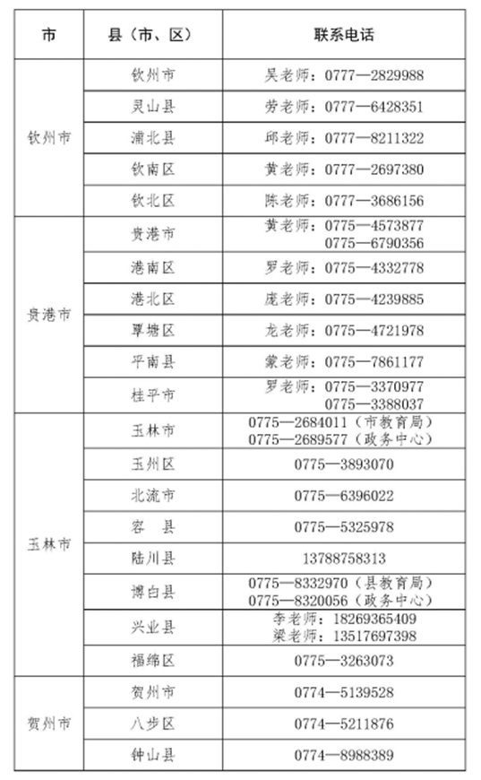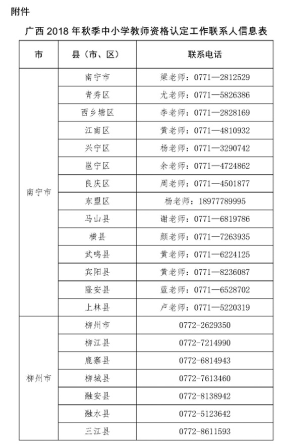廣西2018年秋季教師資格認定工作聯系人信息表