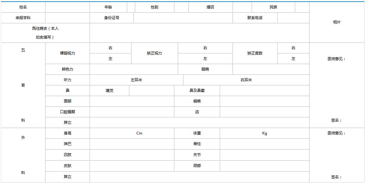 安徽省教師資格申請人員體檢表