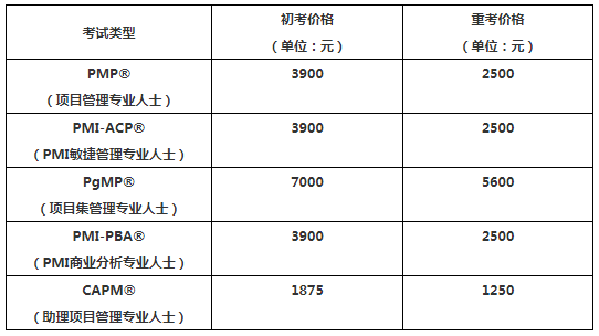 根據網站公布的信息來看:PMP®考試初考報名費用3900元,英文有效期內重考報名費用2500元。(需要注意的是:報名費用每隔幾年就會有調整,請以具體考期的費用為準,費用是由基金會收取)