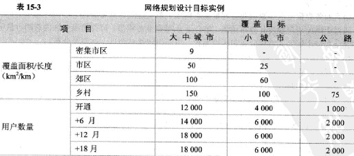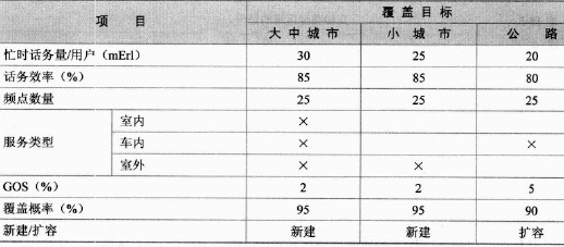 在開始規劃前,必須準確地了解運營商對將要建設的網絡所要達到的目標。網絡規劃設計目標一般來自于標書或與其技術人員的討論,在建設成本允許的前提下,滿足運營商對網絡覆蓋、容量和質量的要求。表15-3、表15-4列出了某期工程這些目標的實例。