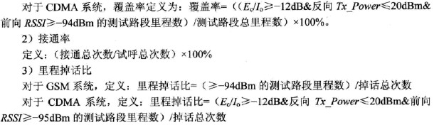 對于GSM系統,播蓋率定義為:覆蓋率=((≥-94dBm測試路段里程數)/測試路段總里程數)xl00%。