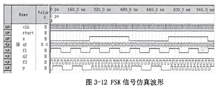 3、基于ALTEREDA的FSK調制仿真結果(見圖3-12)