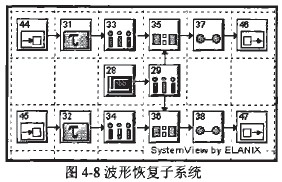 圖4-6中,波形恢復子系統43和串并變換子系統48的內部電路圖分別為圖圖4-8和圖4-9所示*波形恢復模塊中兩路信號先分別經過延遲后再以各自的碼速率進行采樣。延遲圖標31、32的延遲時間是解調仿真的重要參數,從通信系統的概念上說,應該是從濾波輸出碼元的開始時刻到眼圖中眼睛睜開最大的時刻之間,以保證系統獲得最大的噪聲容限。