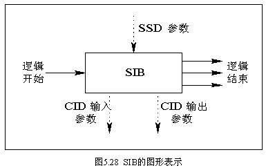 每個SIB由一個邏輯入口,一個或幾個邏輯出口來表示。圖中的虛線表示流入流出SIB的數據參數,每個SIB需要兩類參數,一類為動態參數,稱為呼叫實例數據(CID),其數據隨每次具體的呼叫而變化;另一類是靜態參數,稱為業務支持數據(SSD),主要是SIB在描述業務屬性時所需的數據參數。