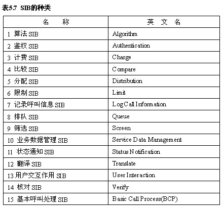為支持CS-1的業務及其特征,ITU-T明確定義了15種SIB,見表5.7。
