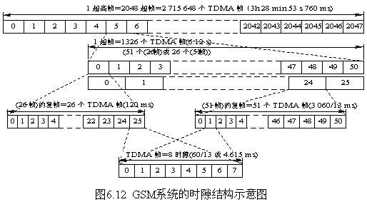 下面給出GSM系統的時隙結構,如圖6.12所示。GSM的幀結構分為幀、復幀、超幀、超高幀。