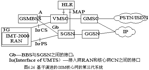 3GPP標準的制定分為99年版本(R99)和2000年版本(R00)。99年版本的核心網基于演進的GSM MSC和GPRS GSN,電路與分組交換節點邏輯上是分開的;而無線接入網(RAN)則是全新的,見圖6.26。