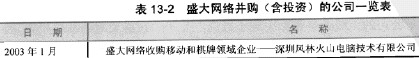 表13-2盛大網(wǎng)絡(luò)并購(含投資)的公司一覽表