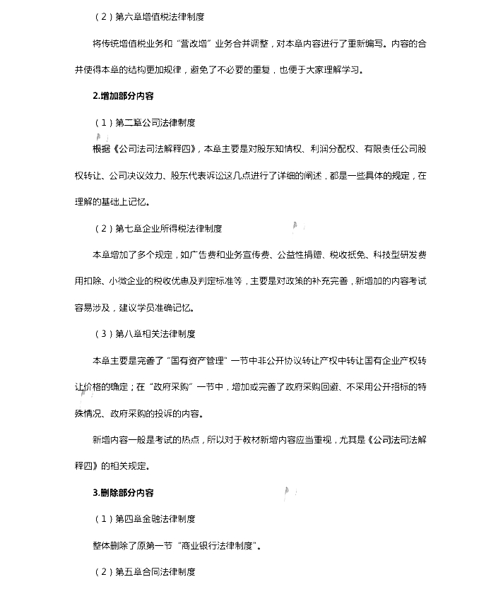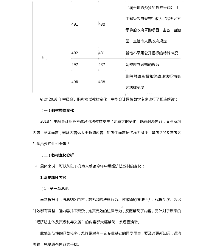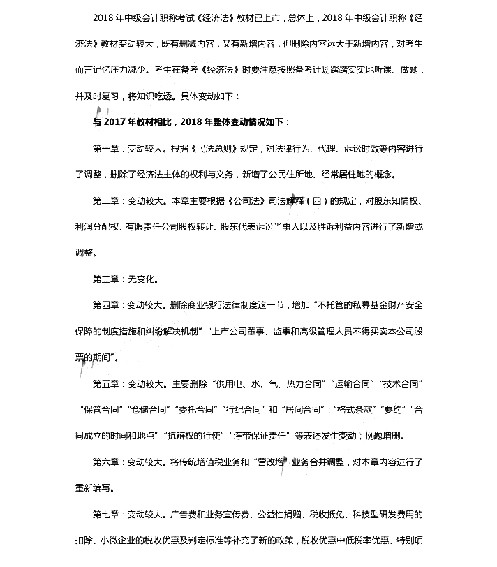 2018年中級會計師考試教材變化解析:經濟法