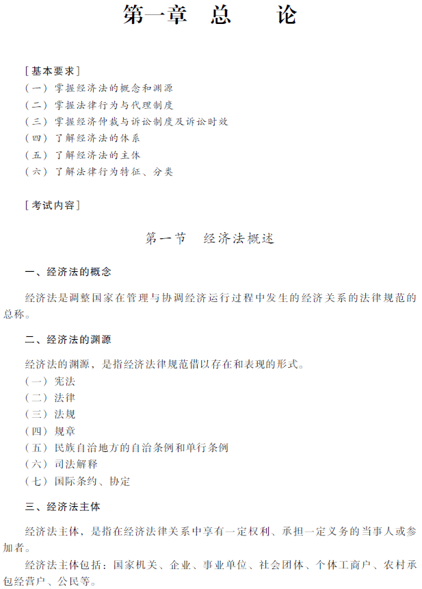 2018年中級會計師《經(jīng)濟法》考試大綱:第一章