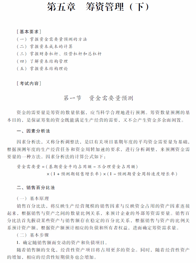 2018年中級會計師《財務管理》考試大綱:第五章