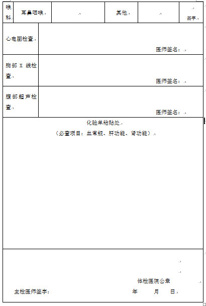 河北護(hù)士注冊體檢表樣本格式: